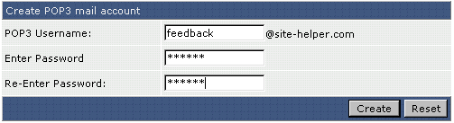 Note: You cannot create a POP3 account if the username is taken by an autoresponder, forwarder, or mailing list.