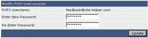 Once the "Modify POP3 Mail Account" box appears, enter the new password and click "Update."
