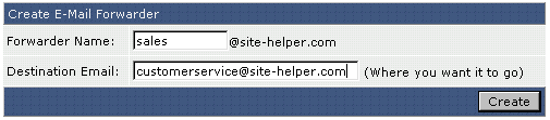 Forwarders allow you to direct incoming mail to a different address. For example, assume you wanted e-mail sent to support@yourdomain.com and sales@yourdomain.com to arrive at the POP3 account customerservice@yourdomain.com.